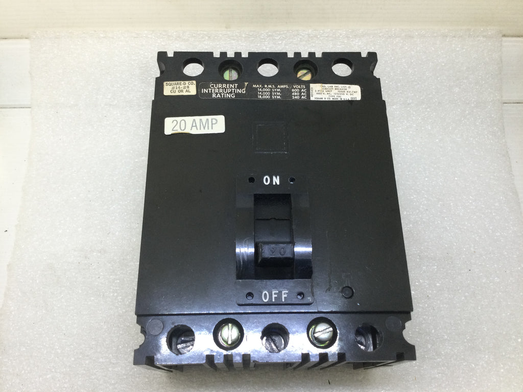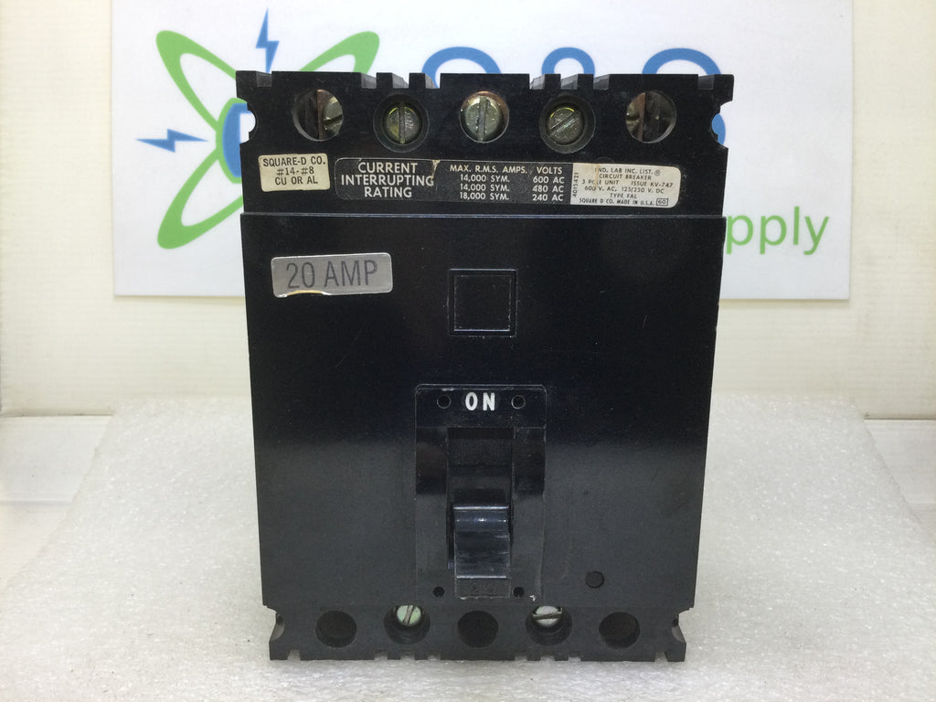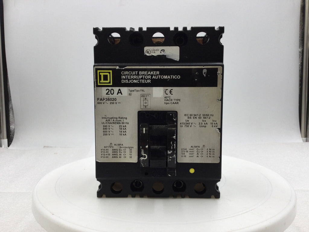 Square D FAP36020 20 Amp 3 Pole 125/250VDC 600Vac Type FAL Circuit Breaker