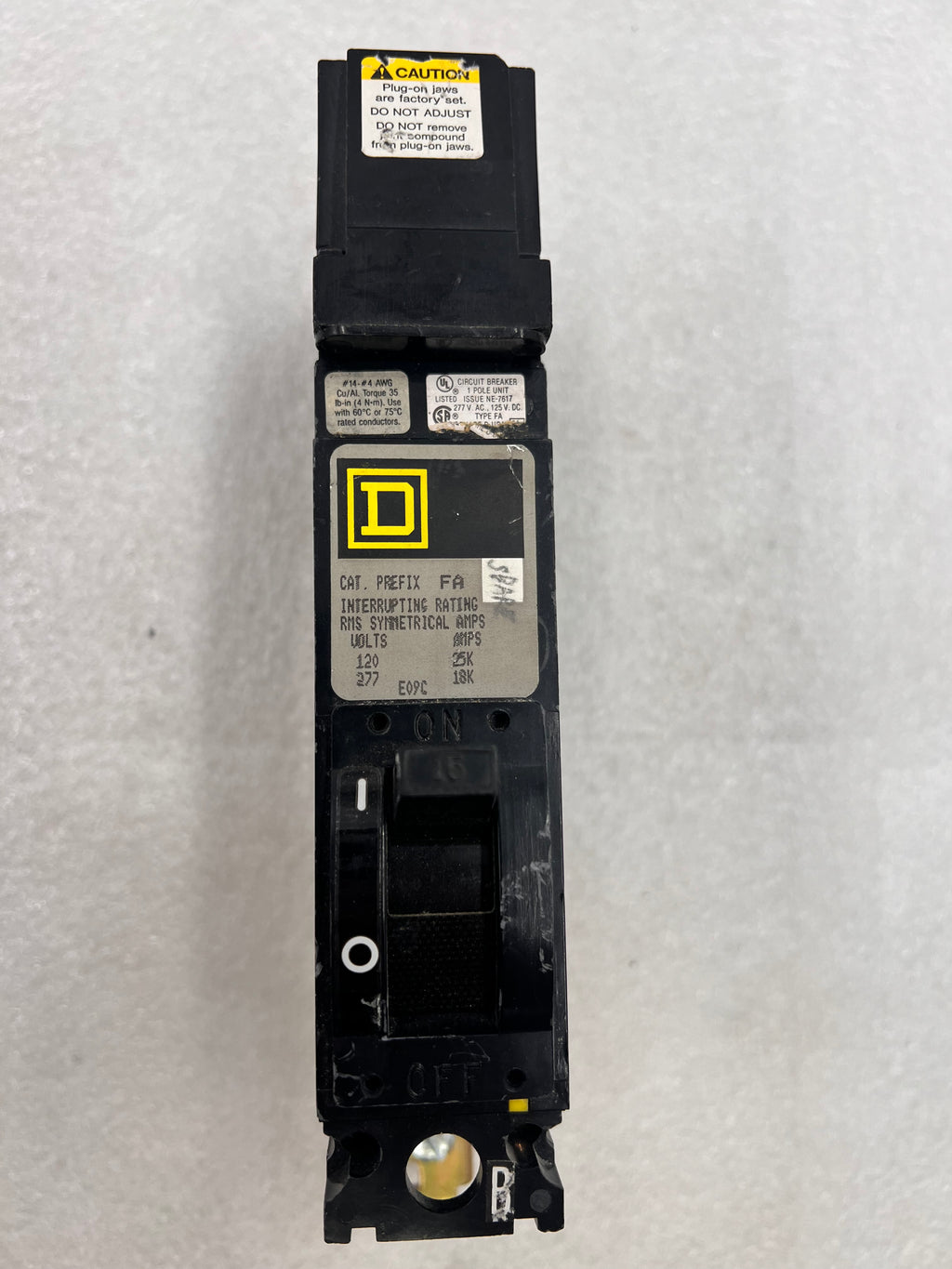 Square D FA14015B 15 Amp 277V 1 Pole I Line Circuit Breaker 18kA