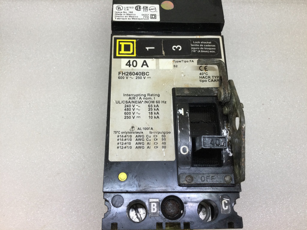 Square D FH26040BC 40 Amp 2 Pole 240/600v I Line Circuit Breaker