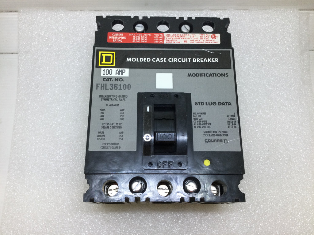 Square D FHL36100 100 Amp 3 Pole 600V Molded Case Circuit Breaker