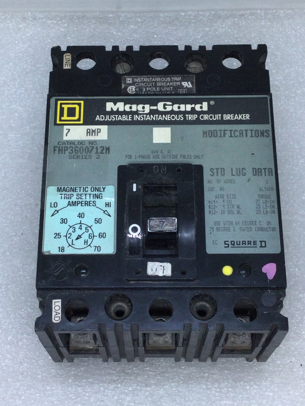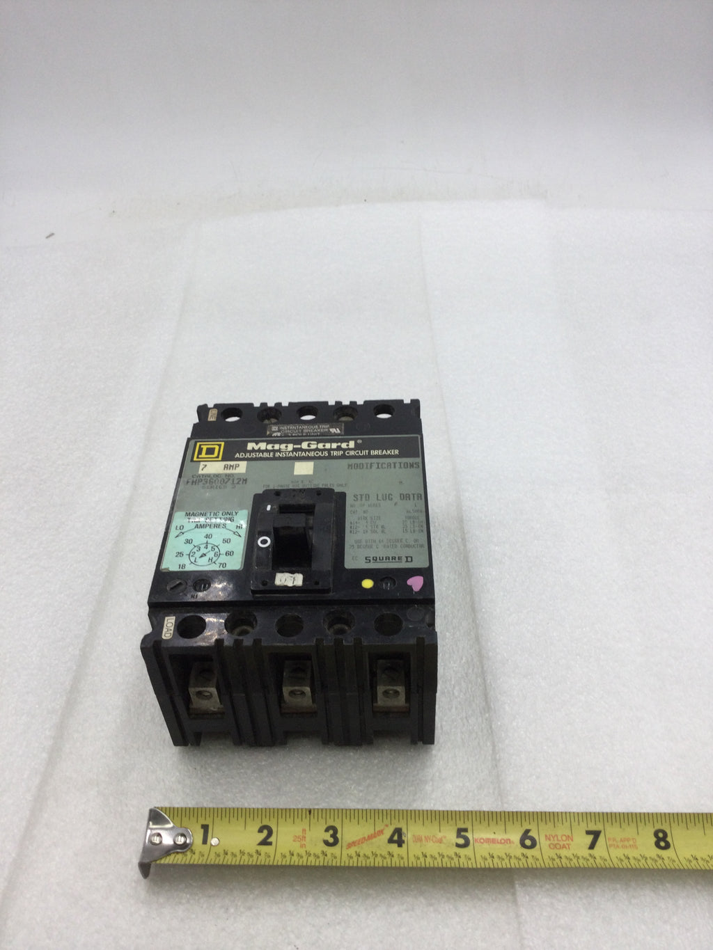 Square D FHP3600712M 7 Amp 3 Pole 600 VDC Mag-Gard Circuit Breaker with Adjustable Trip