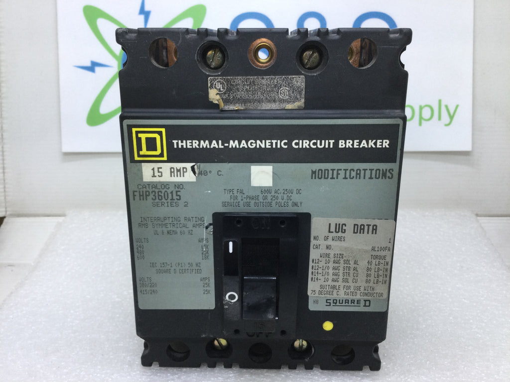 Square D FHP36015 15 Amp 3 Pole 600V Thermal Magnetic Circuit Breaker