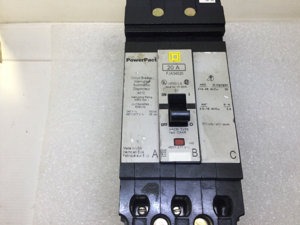 Square D FJA34020 20 Amp 3 Pole 240V I Line Circuit Breaker