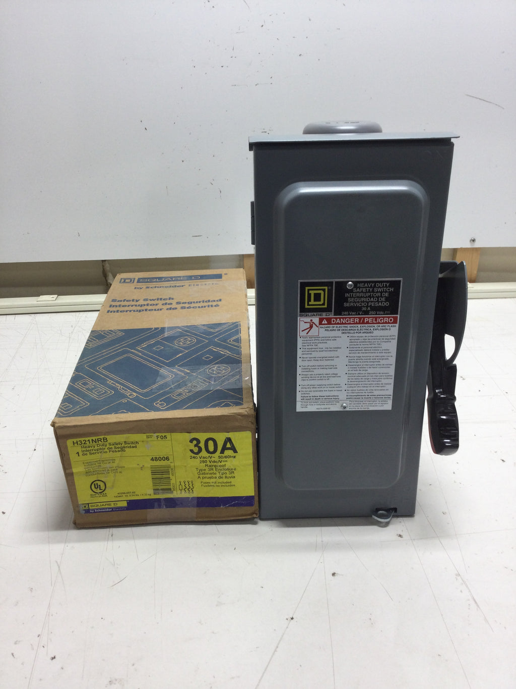 The Square D H321NRB is a 30 Amp, 240V fusible safety switch designed for reliable circuit protection. Housed in a durable 14 1/2" x 7 1/2" enclosure, it ensures safe disconnection and isolation of electrical circuits for maintenance or emergency purposes. Ideal for industrial and commercial applications, this switch combines durability with straightforward operation to enhance overall electrical safety.