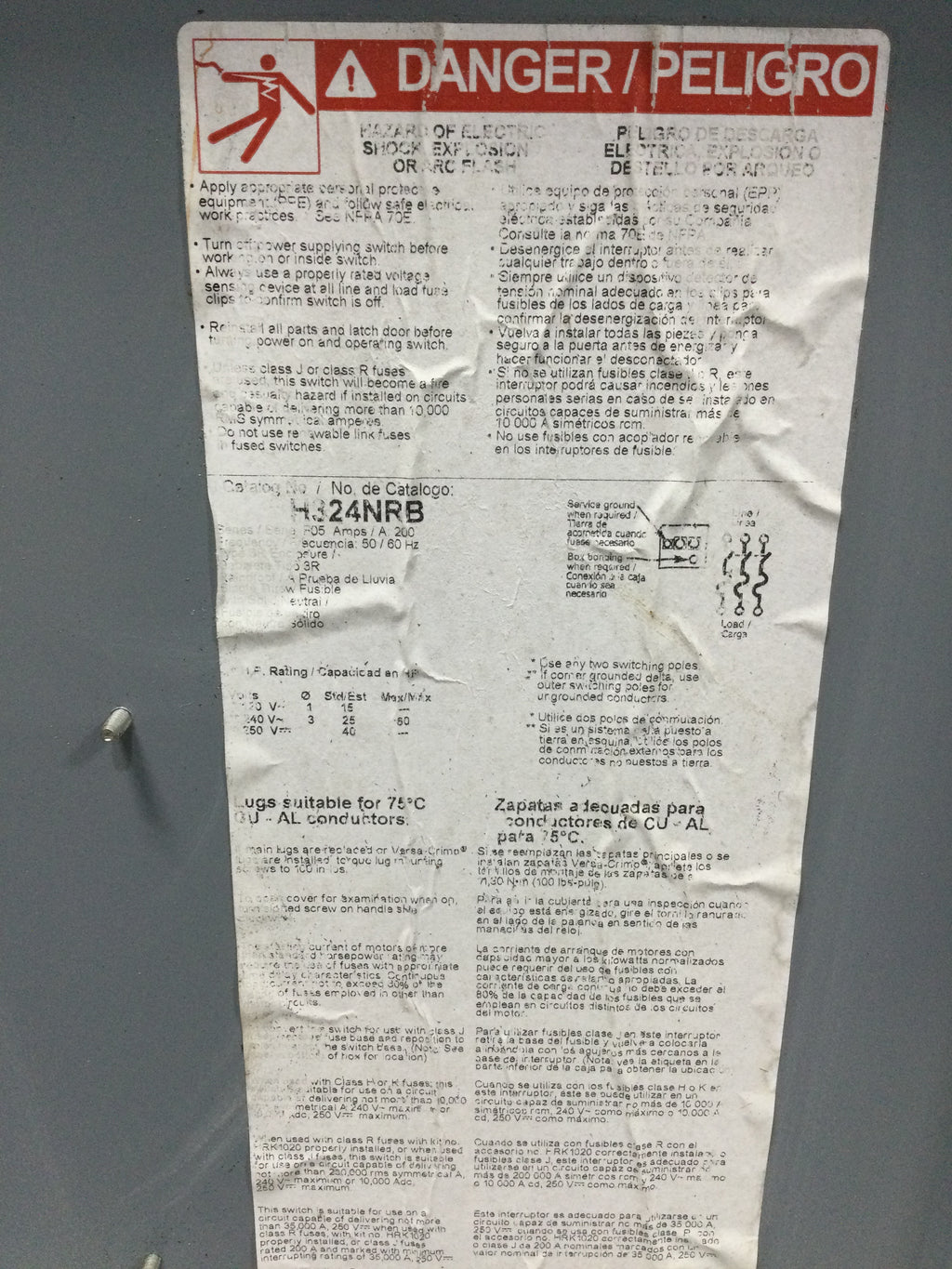 H324NRB - Safety switch, heavy duty, fusible, 200A, 4 wire, 3 pole, 1 neutral, 60hp, 240VAC/250VDC, 3R, bolt on hub provision | Schneider Electric USA (se.com)