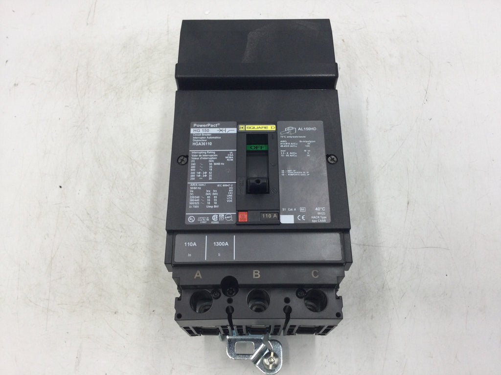 Square D HGA36110 110A 600V 3P(ABC) PowerPact I-Line Circuit Breaker