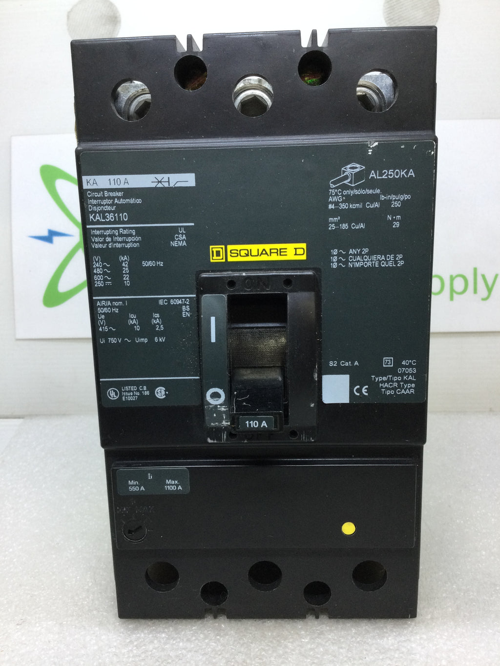 Square D KAL36110 110 Amp 3 Pole 600V Circuit Breaker
