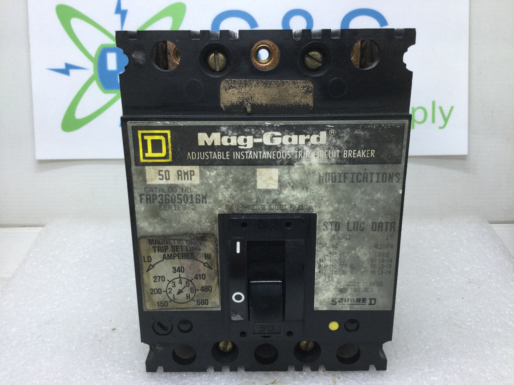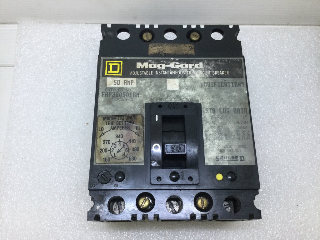 Square D FAP3605016M 50 Amp 3 Pole 600VAC Mag-Gard Adjustable Instantaneous Trip Circuit Breaker