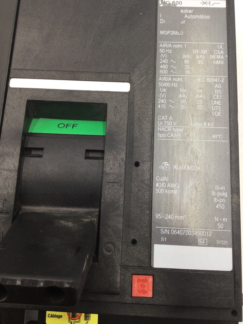 Square D MGP26800 800 Amp 2 Pole 600 VAC MG800 PowerPact Circuit Breaker