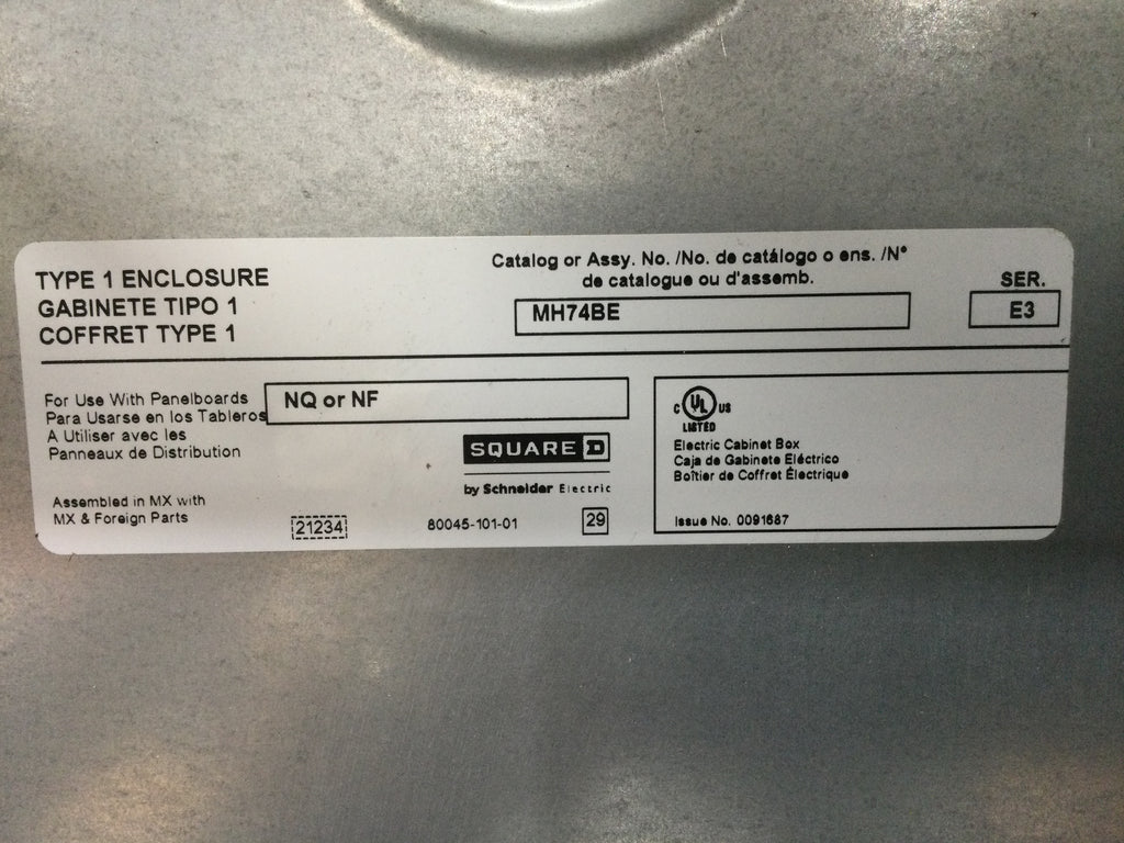 • MH74BE Panelboard enclosure box, NQ/NF, Type 1, 20in W x 74in H x 5.75in D