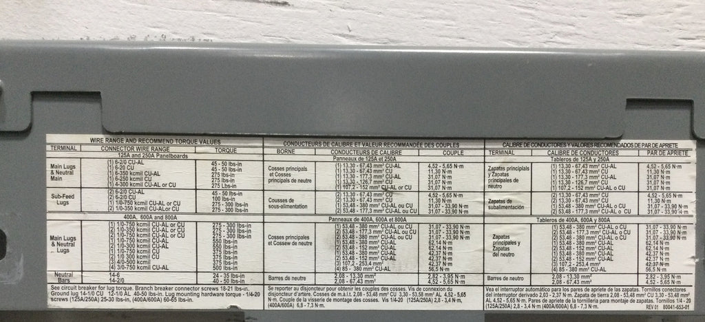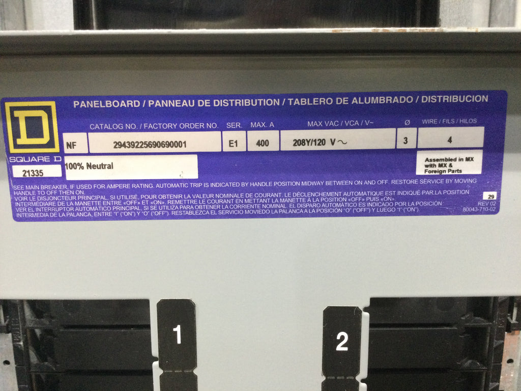 Square D NF 294392256906900001 Interior Series 400 A 208/120V 3 PH 4 W 30 Space