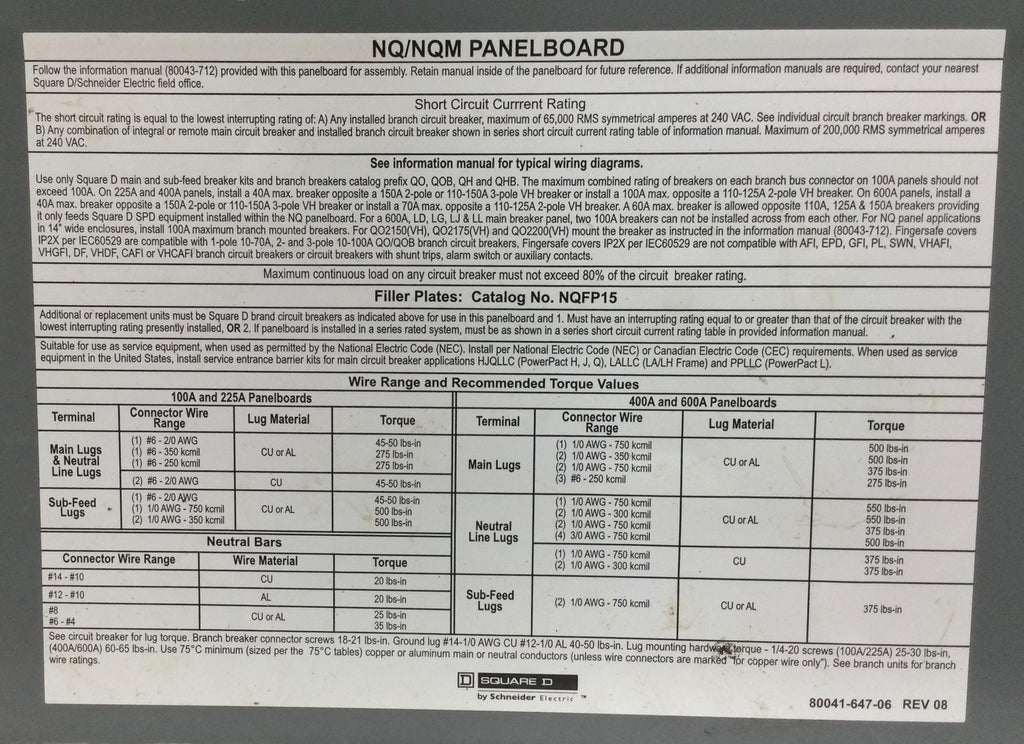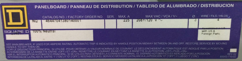 The Square D NQ/NQM 225 Amp Panelboard features a 3-Phase 208/120V interior design, providing reliable and efficient power distribution. With a 46447041380140001 model number, this panelboard is suitable for a variety of industrial and commercial applications. Increase productivity and maintain safety with this high-quality panelboard.