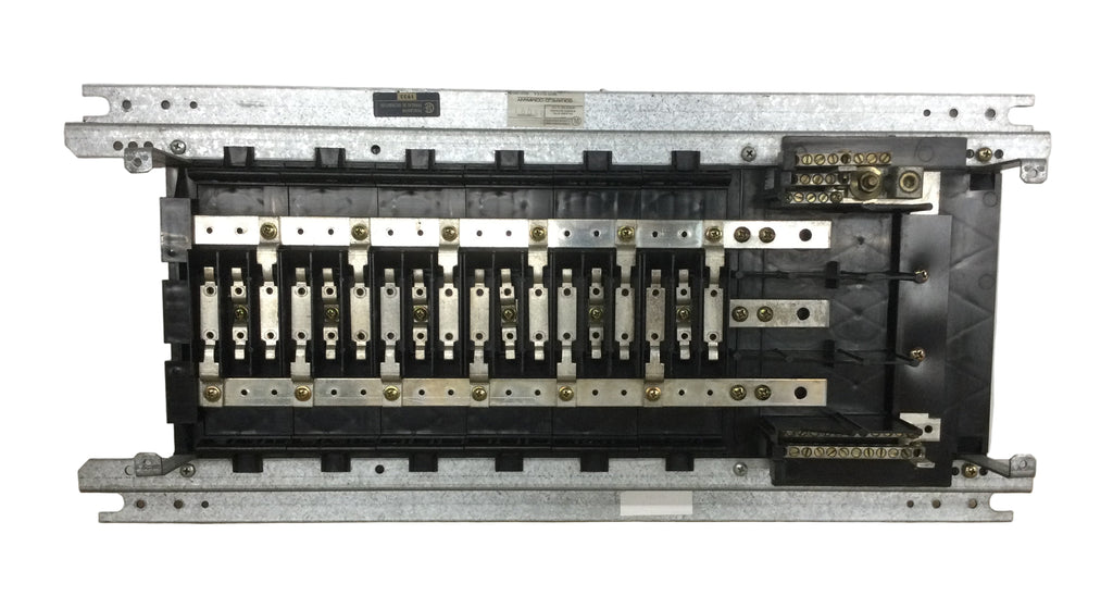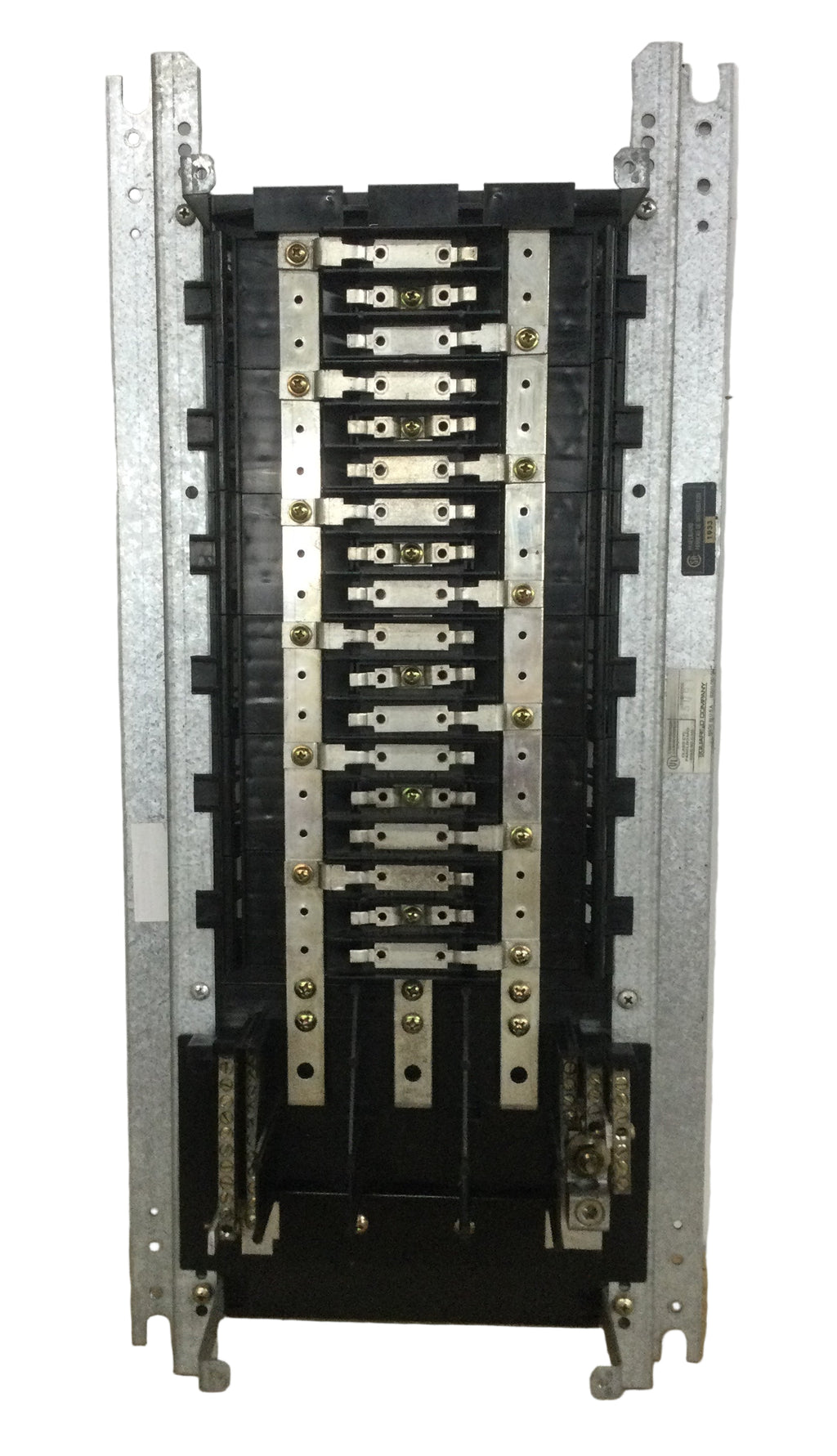Square D 18-space, 36-circuit load center interior assembly designed for 3-phase 208Y/120V electrical systems. This guts-only unit measures 12" x 25" and provides the core components needed for panel upgrades or replacements. Ideal for commercial and industrial applications requiring reliable power distribution.