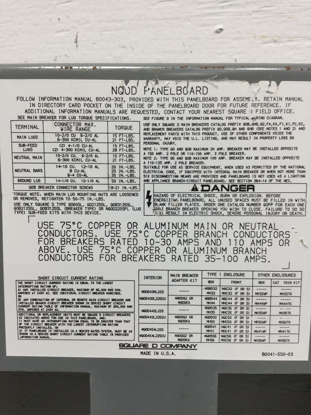 Square D NQOD442L225 225 Amp 42 Space Panelboard w/Dead Front 30 5/8" x 11 1/2"