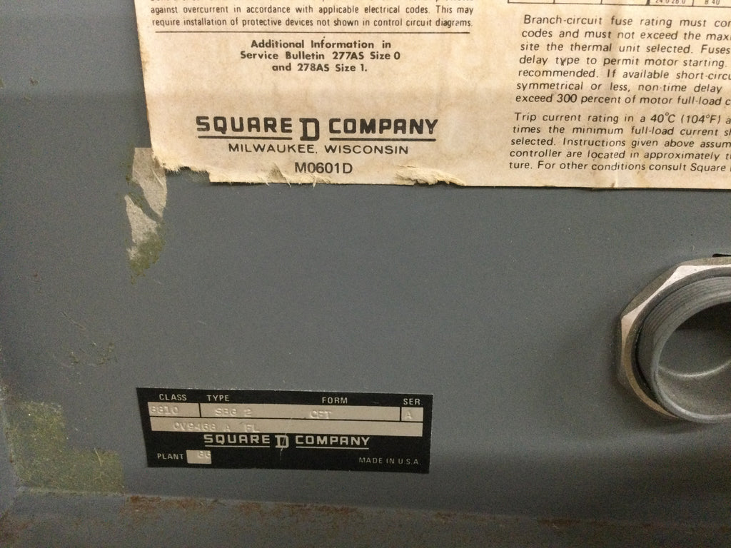 Square D 8810-SBG2-CFT Contactor Can Only w/ KA-1 Contact Block and KM-38 Light Module 15" x 20"