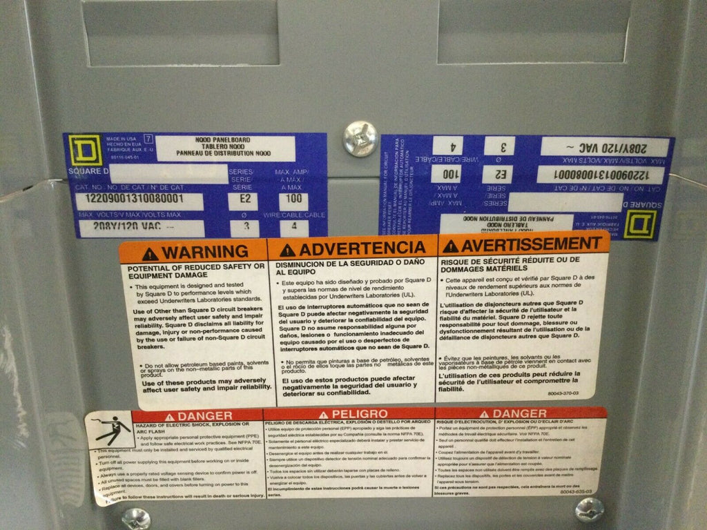 SQUARE D PANEL GUTS 100 AMP 3 PH 4 WIRE 120/208V NQOD PANELBOARD FOR MH32WP