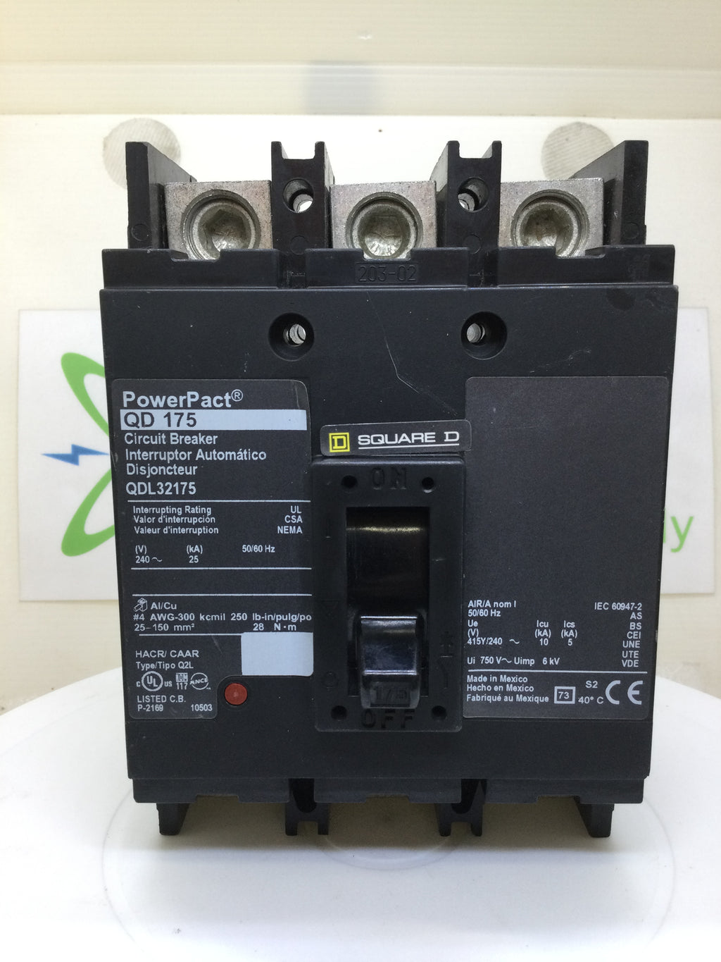 Square D QDL32175 175 Amp 3 Pole PowerPact Circuit Breaker
