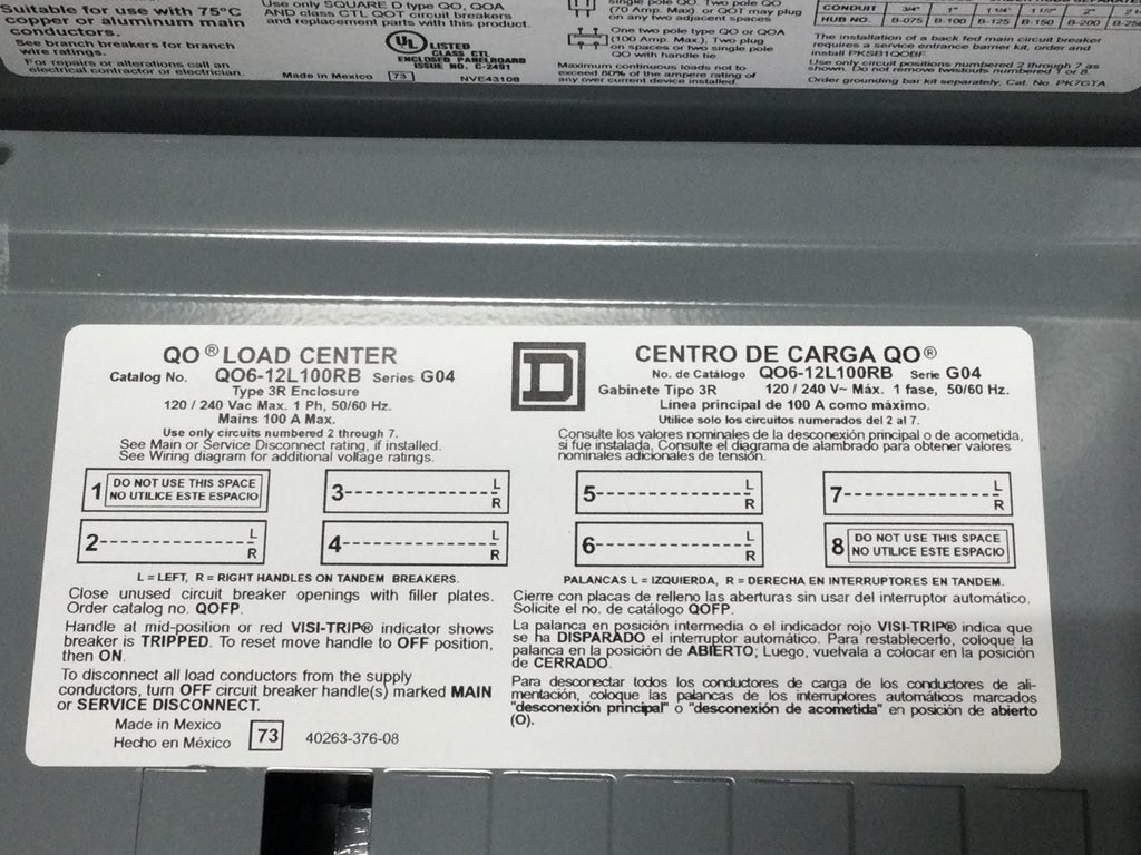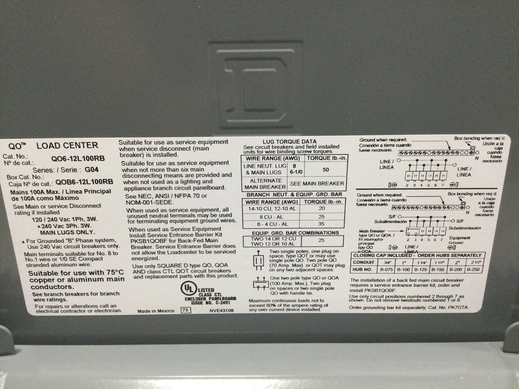 Square D QO612L100RBP QO Load center, 1 phase, 6 spaces, 12 circuits, 100A fixed main lugs, NEMA3R