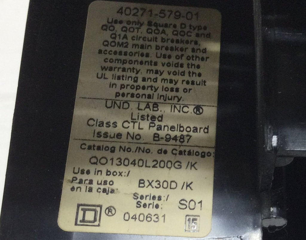 Square D QO13040L200G/K 200 Amp 15 Space 120/240V Main Lug Guts Only 9" x 17"