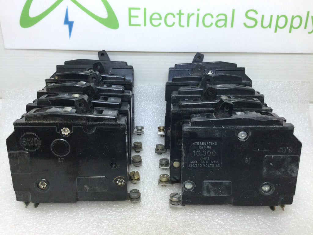 Lot of 10 - Square D QOB120 20 Amp 1 Pole 120/240V Bolt On Circuit Breaker - Black Face