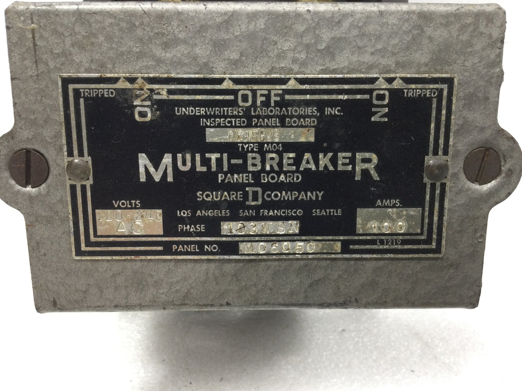 Square D 8298688 100A 120/240V Type M04 Multi-Breaker Panel Guts Only 4.5" X 15"