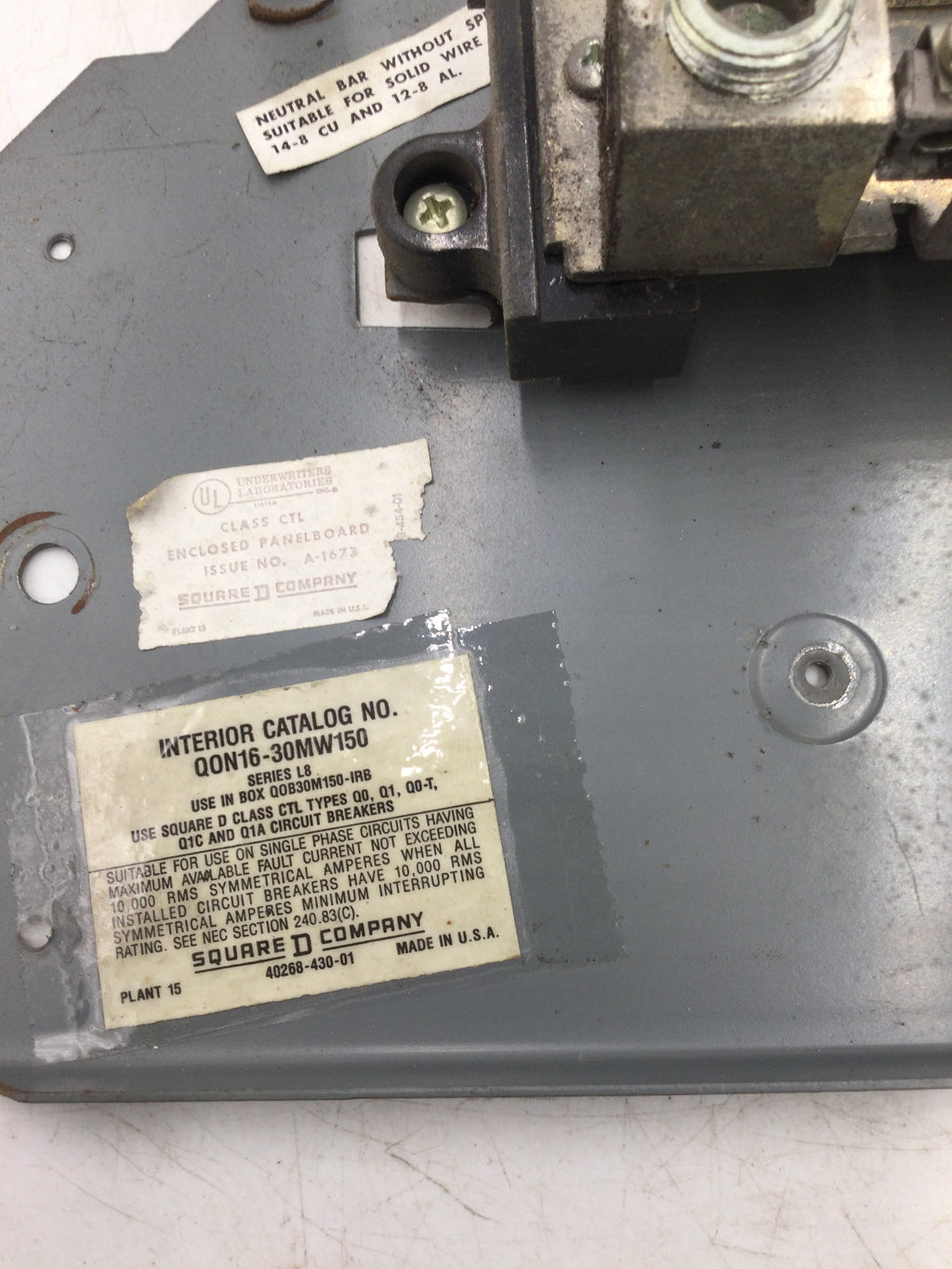 Square D QON16-30MW150 150 Amp 16 Space 120/240 VAC Load Center Guts Only 6"X21"