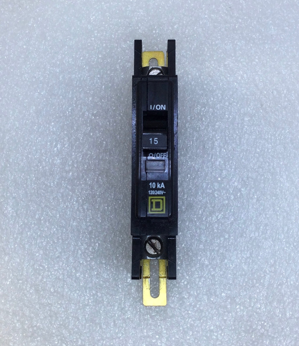 Square D QOU115 15-amp single-pole circuit breaker rated for 120/240V applications. Genuine Square D quality with full electrical performance despite minor cosmetic damage. Perfect for residential and commercial panel upgrades at a reduced price point.