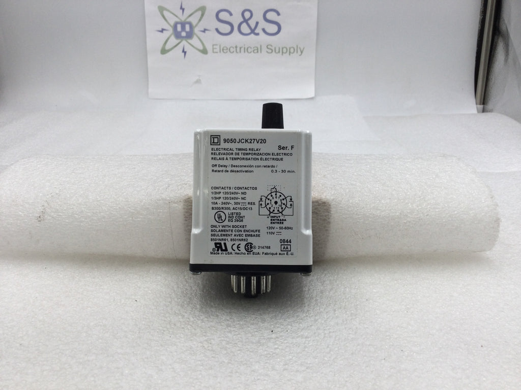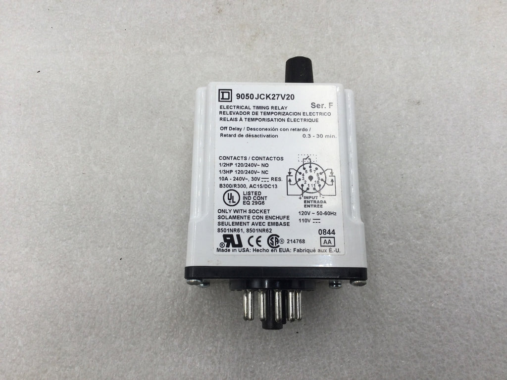Square D 9050JCK27V20 Electrical Timing Relay 10 Amp 120/240 VAC 1/3-1/2 HP without Relay Socket Base