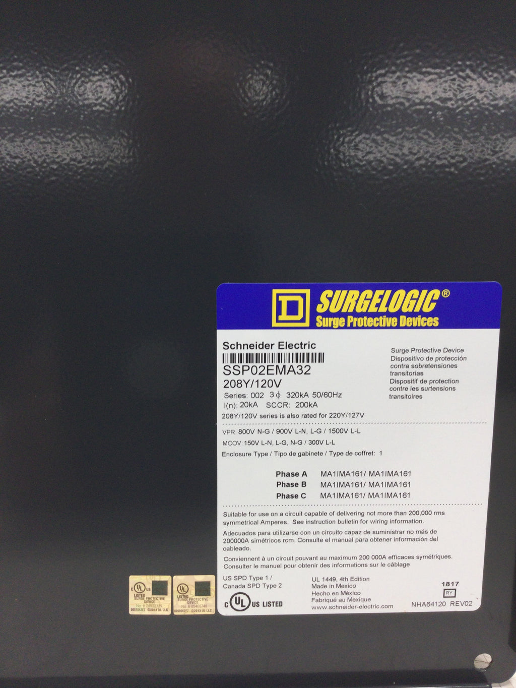 Square D SSP02EMA32 Surge Protection Device 208Y/120V 3 Phase 50/60Hz