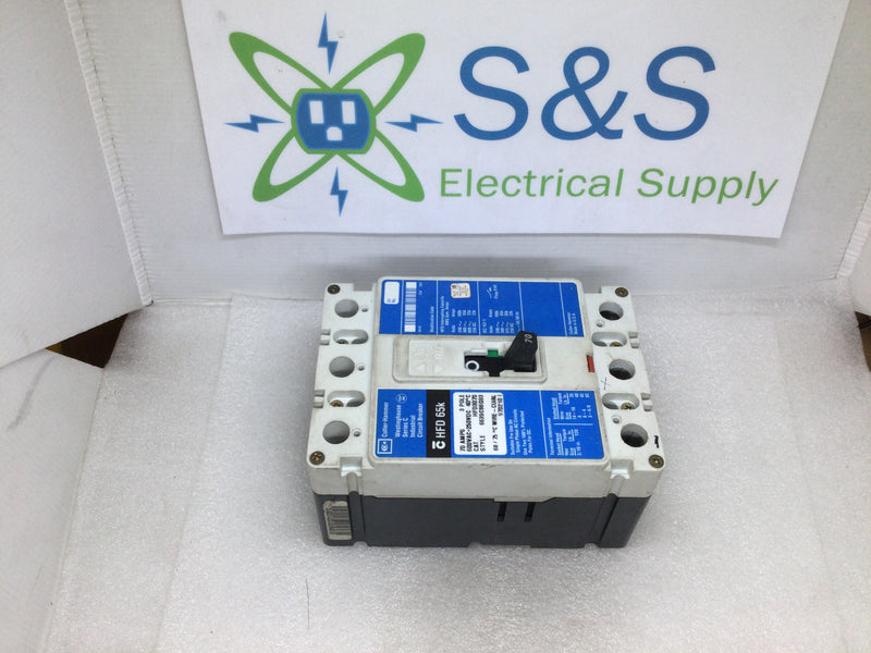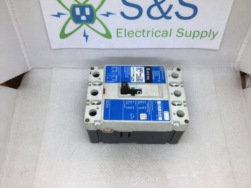 Cutler Hammer/Westinghouse HFD3070 70 Amp 3 Pole 600 VAC HFD 65K Circuit Breaker