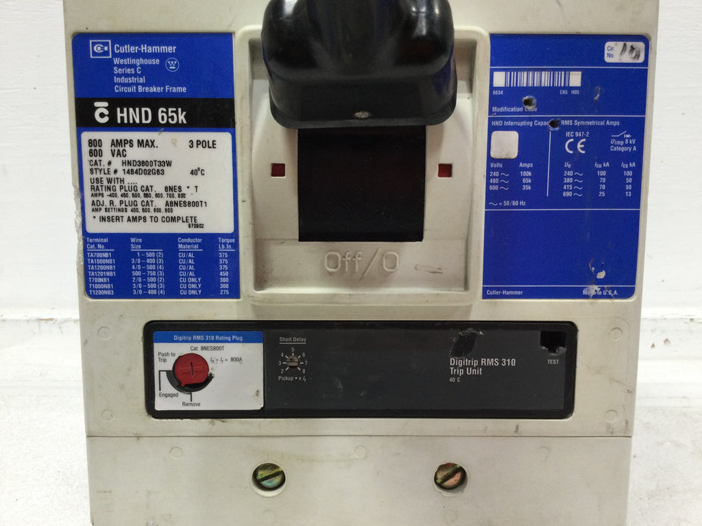 Cutler Hammer/Westinghouse HND3800T33W 800A 3 Pole 600V Bolt on Circuit Breaker