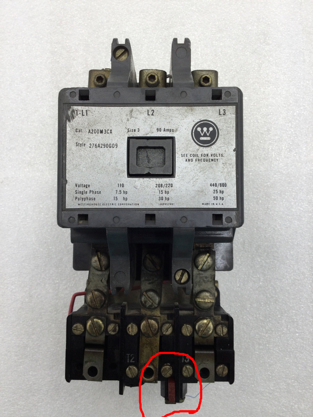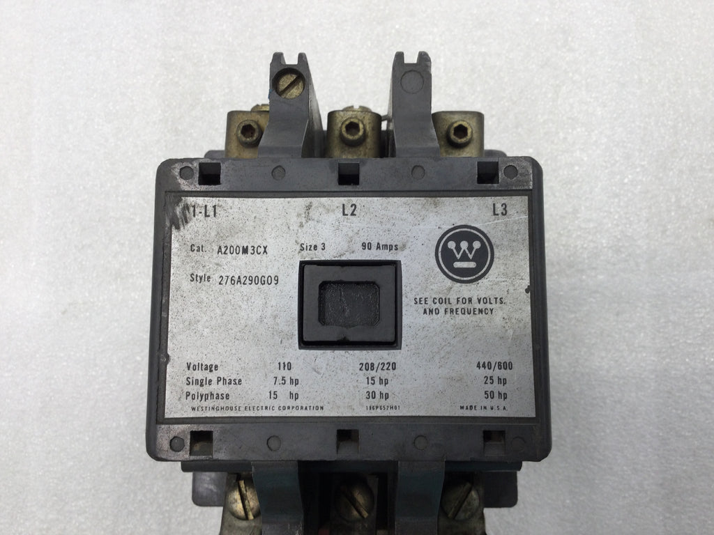 Westinghouse A200M3CX 90 Amp 3 Pole 110-600V 50 HP Motor Starter w/480 VAC Coil