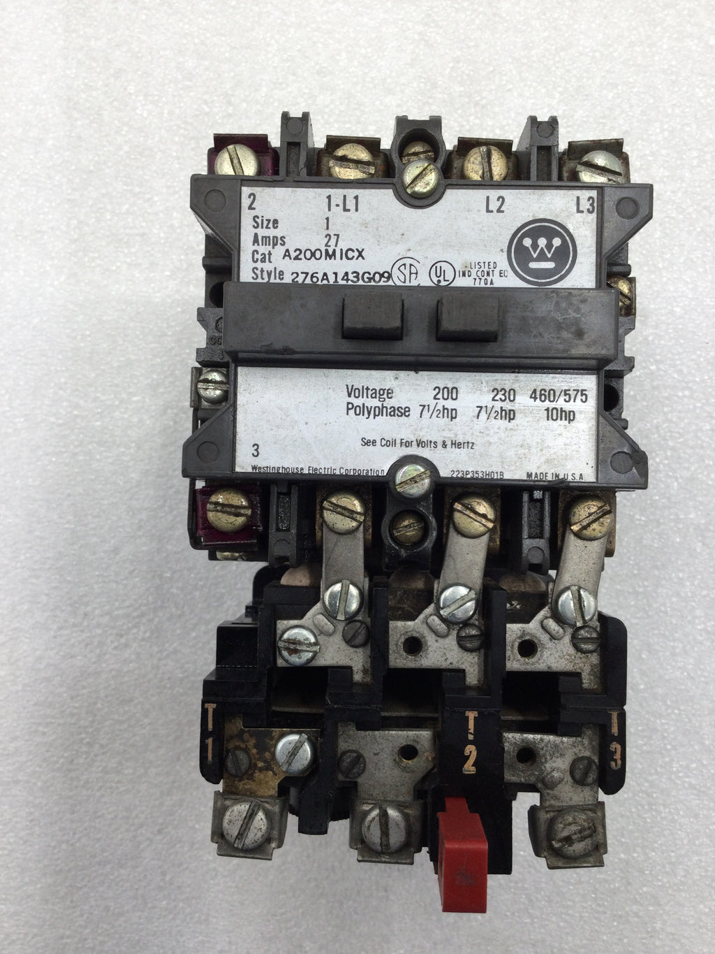 Westinghouse A200MICX 27 Amp 3 Pole 200-575V 10 HP Motor Starter w/480 VAC Coil
