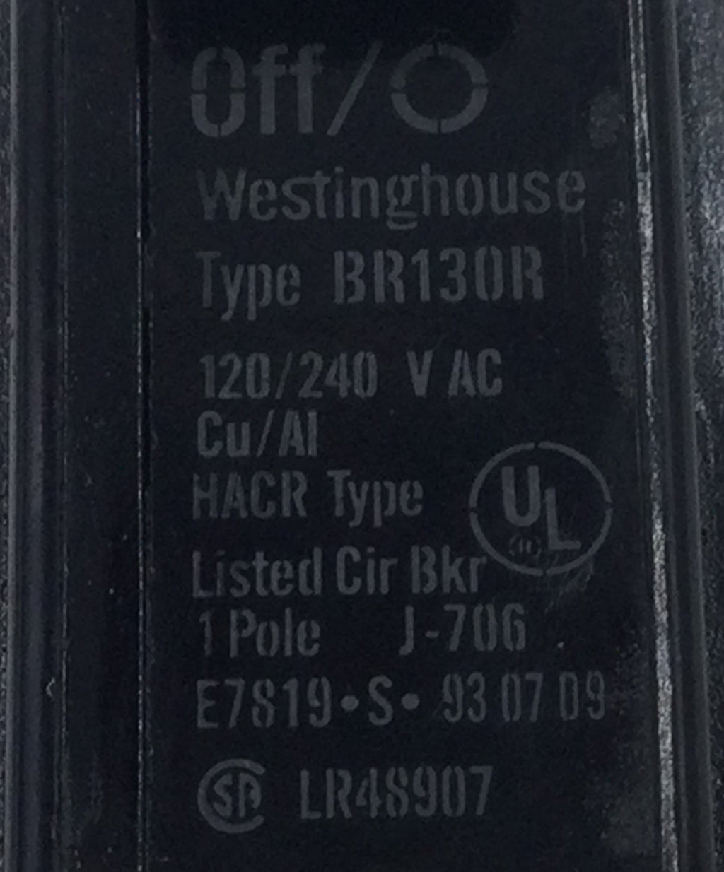 Westinghouse BR130R 30 Amp 1 Pole 120/240V Circuit Breaker - Printed Face