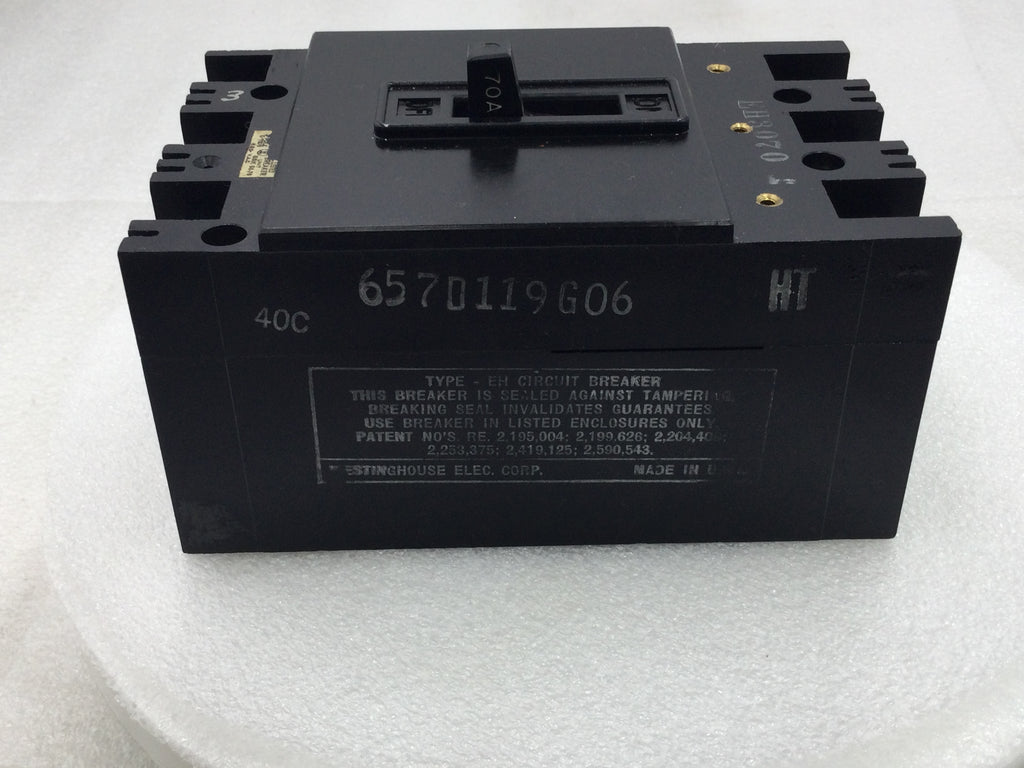 Westinghouse EH3070 70 Amp 3 Pole 480V Circuit Breaker - Cosmetic Flaw