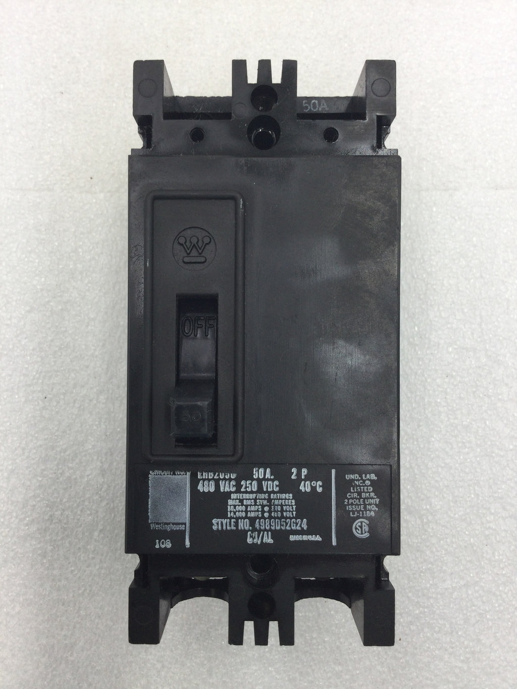 Westinghouse EHB2050 50 Amp 2 Pole 480 VAC Type EHB Circuit Breaker