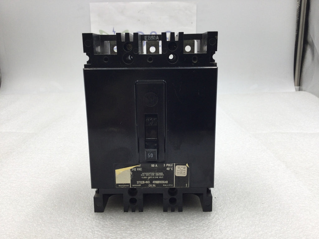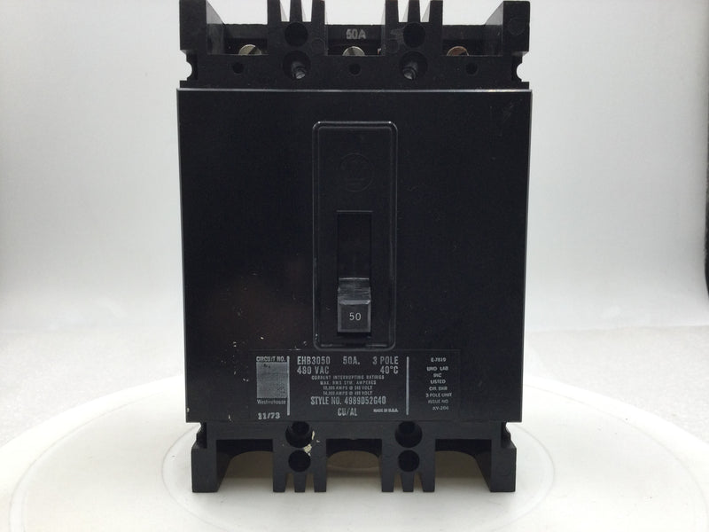 Westinghouse EHB3050 50 Amp 3 Pole 480V Circuit Breaker
