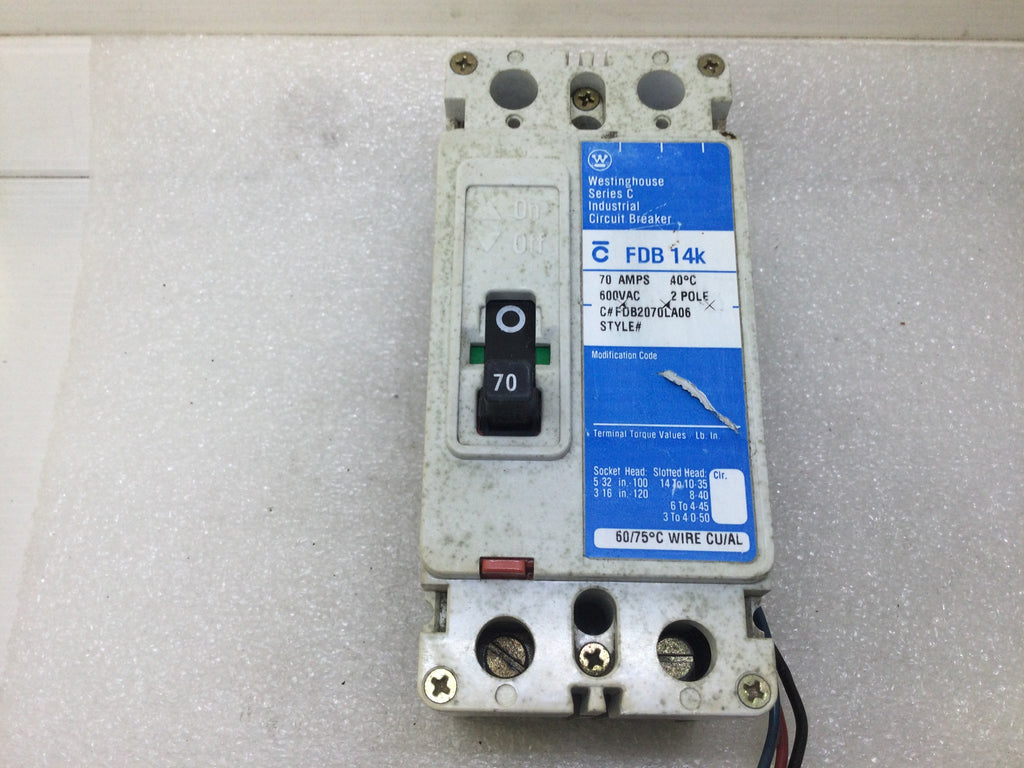 The Westinghouse FDB2070LA06 is a 2-pole, 70 amp circuit breaker with a 600Vac rating and an auxiliary switch. With a reliable and efficient design, it provides superior protection and control for your electrical system. Upgrade to the FDB2070LA06 for increased peace of mind and enhanced performance.