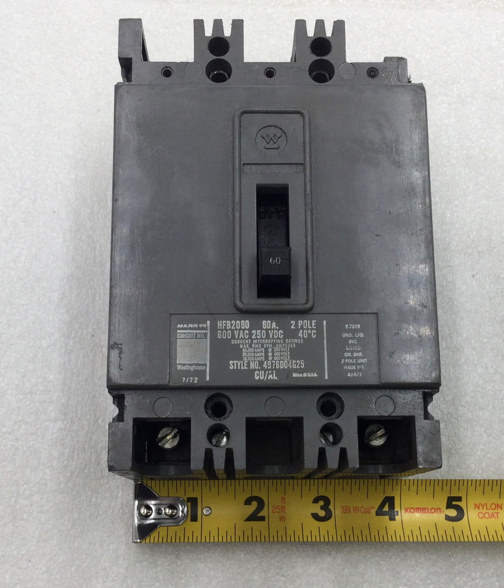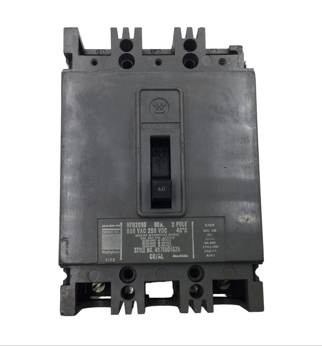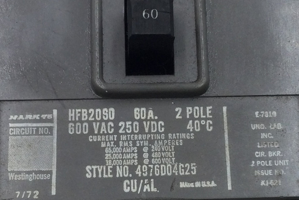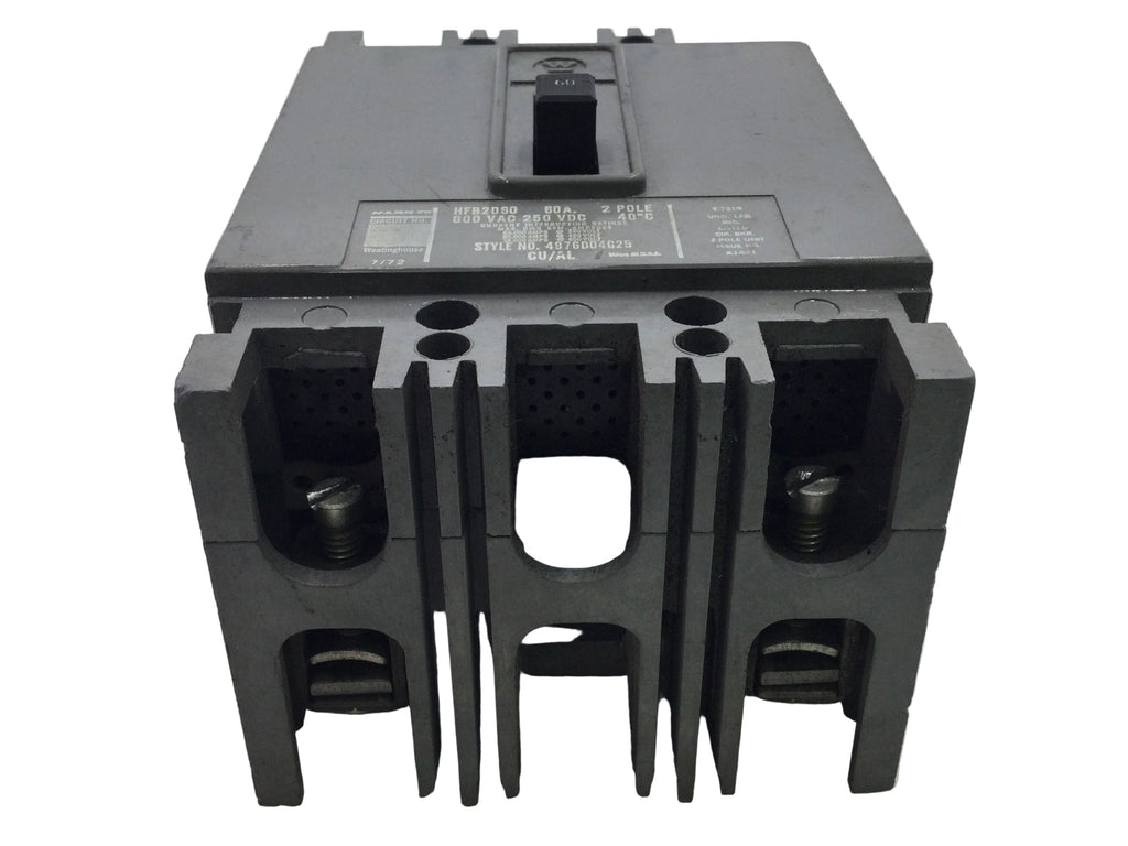 Westinghouse HFB2060 60 Amp 2 Pole 600V Circuit Breaker - Cosmetic Flaw
