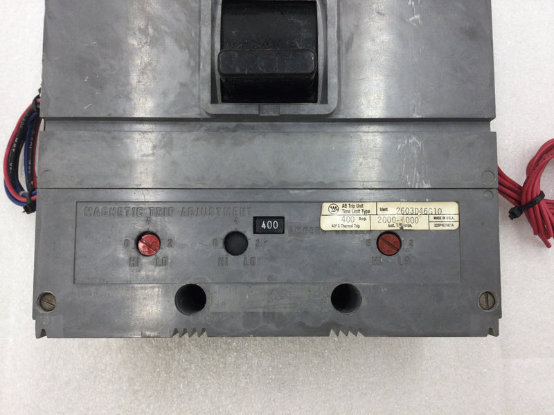 Westinghouse HLA2400F 400 Amp 2 Pole 600V Circuit Breaker w/Aux Shunt Trip