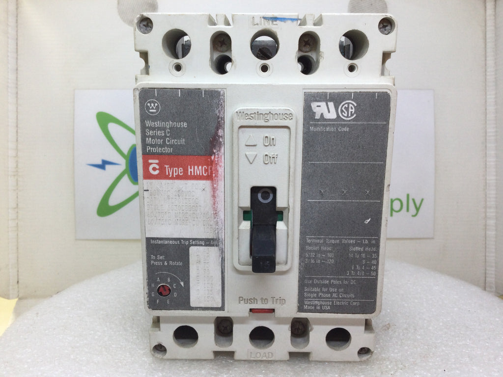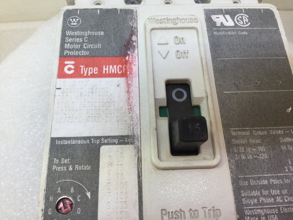 Westinghouse HMCP015E0C 15 Amp 3 Pole 600v Circuit Breaker - Faded Label