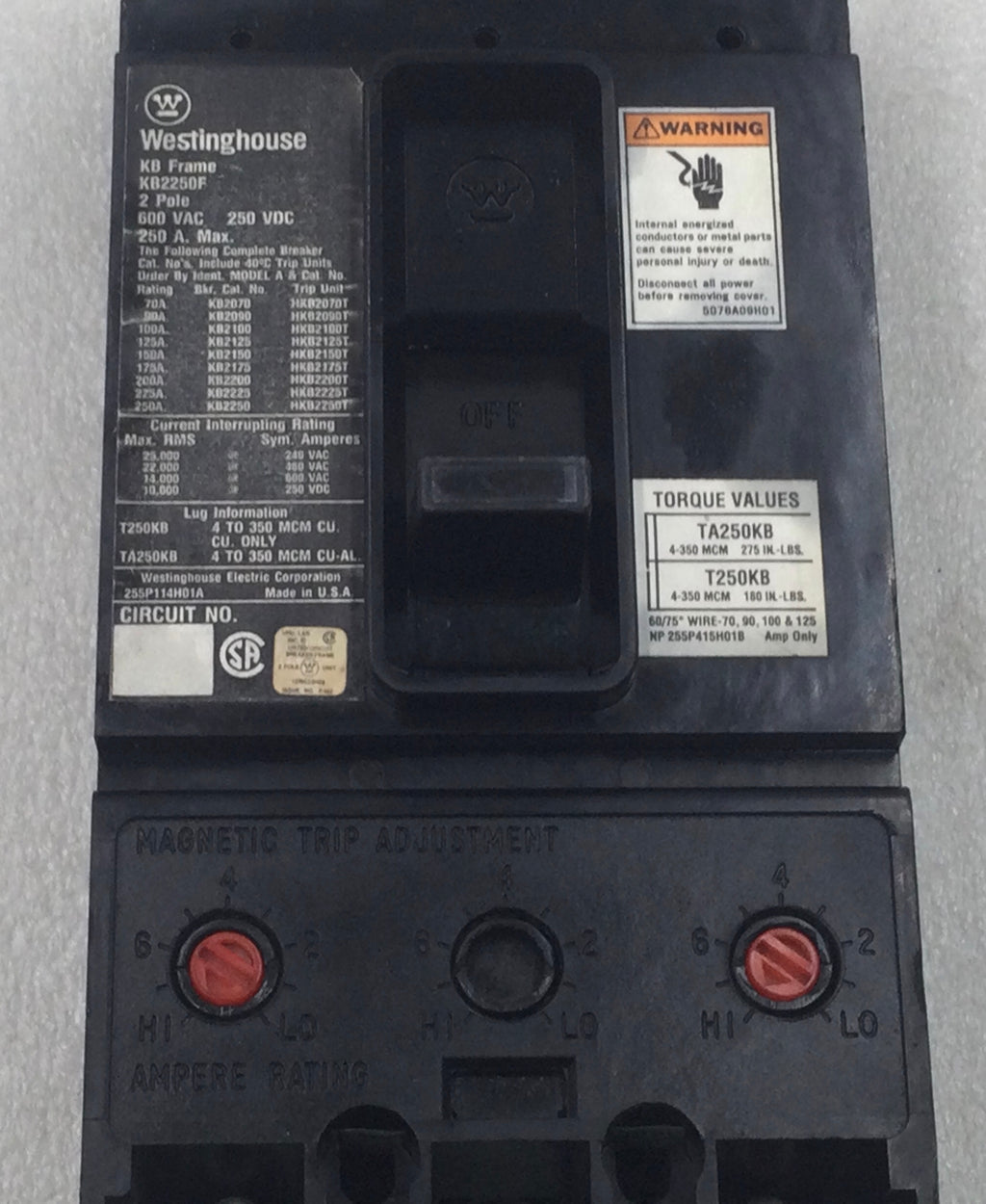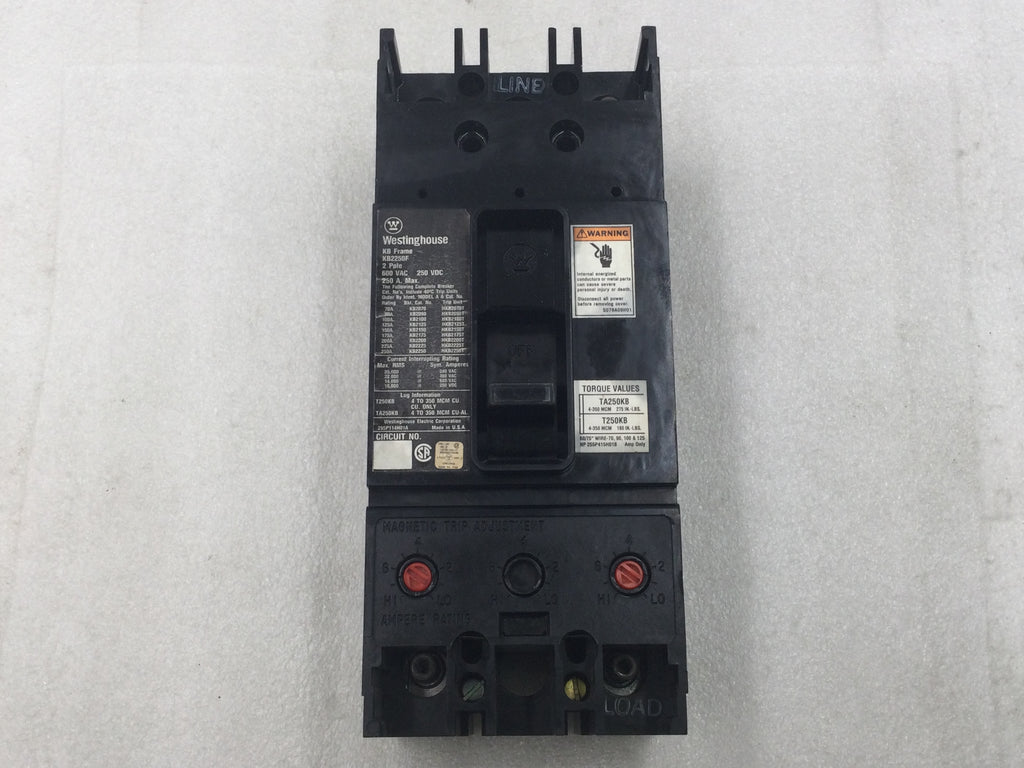 Westinghouse KB2250F 250 Amp 2 Pole 600V KB Frame Breaker - Cosmetic Flaw