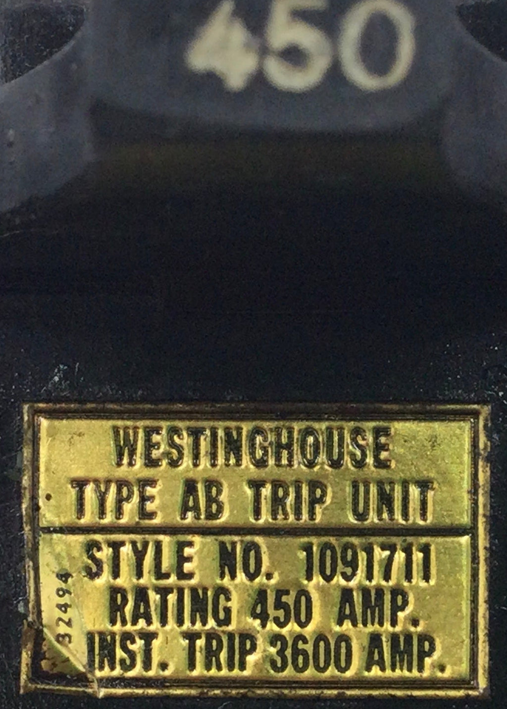 Westinghouse L3450T 450 Amp 3 Pole 600V Circuit Breaker Amp Trip Unit