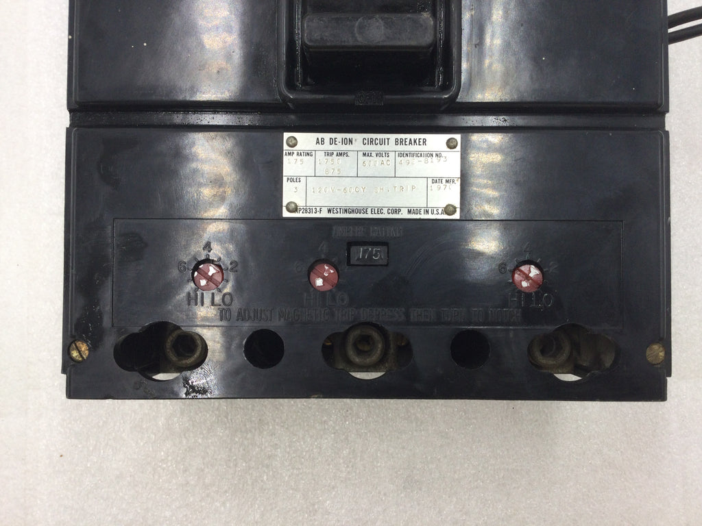 Westinghouse 49E-8193 3 Pole 400 Amp 600 VAC Circuit Breaker with 175 Amp Trip with Shunt Trip