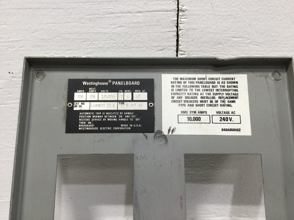 Westinghouse LA44600 225 Amp 42 Space 120/240V Dead Front Only 27" X 8.5"