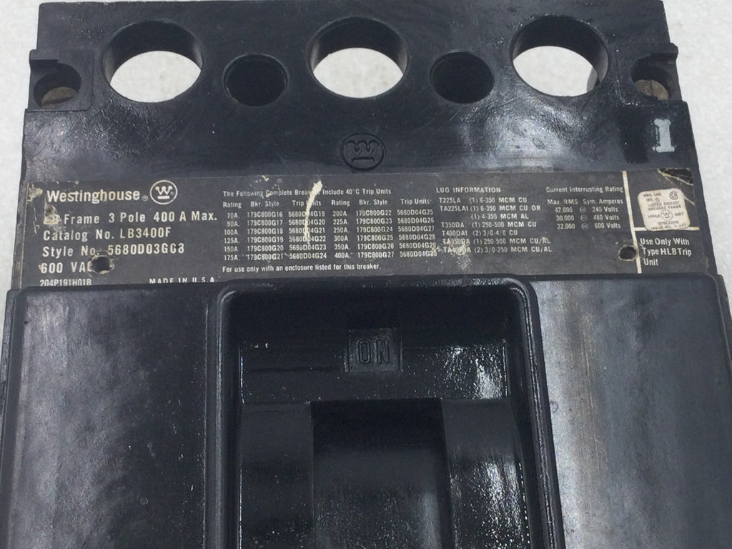 Westinghouse LB3400F 400 Amp 3 Pole 600V Circuit Breaker w/125 Amp Trip