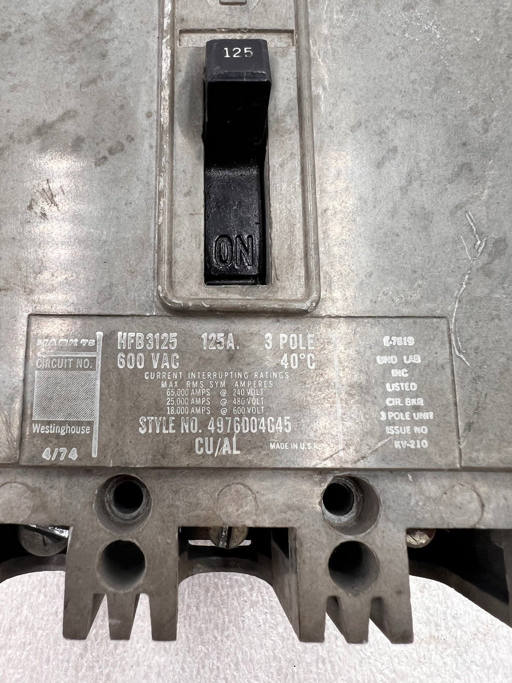 Westinghouse HFB3125 100 Amp 3 Pole 600V Circuit Breaker