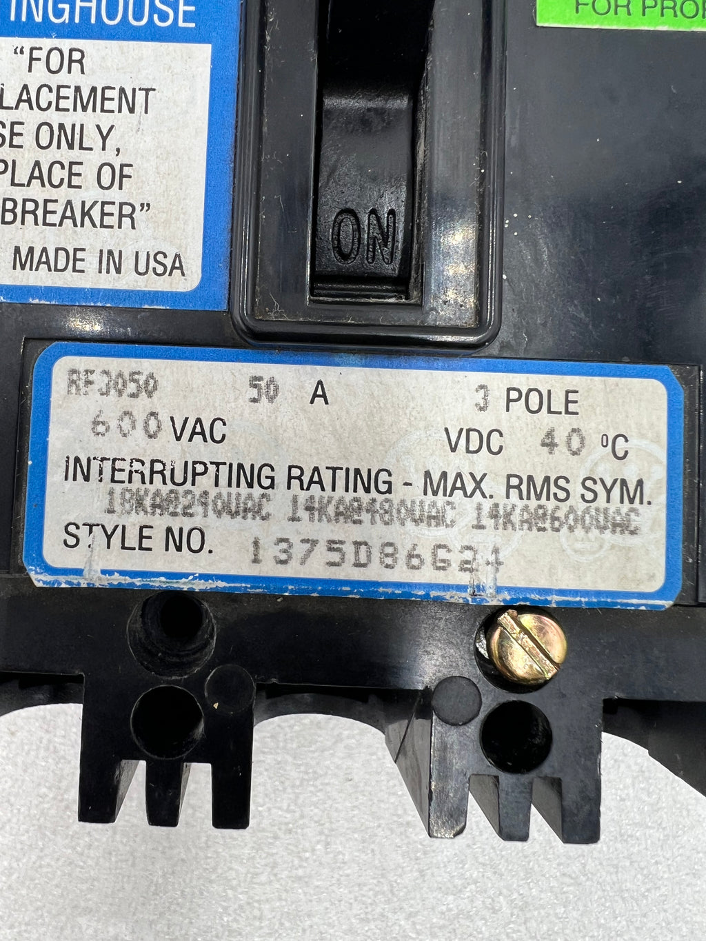 Westinghouse RF3050 Circuit Breaker 600v 50 Amp 3 Pole