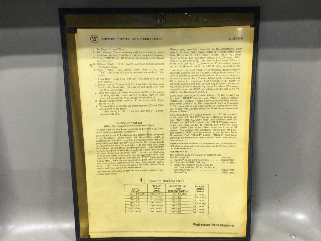 Westinghouse S140D481G01 3 Amp 60Hz 125V Amptector Tester