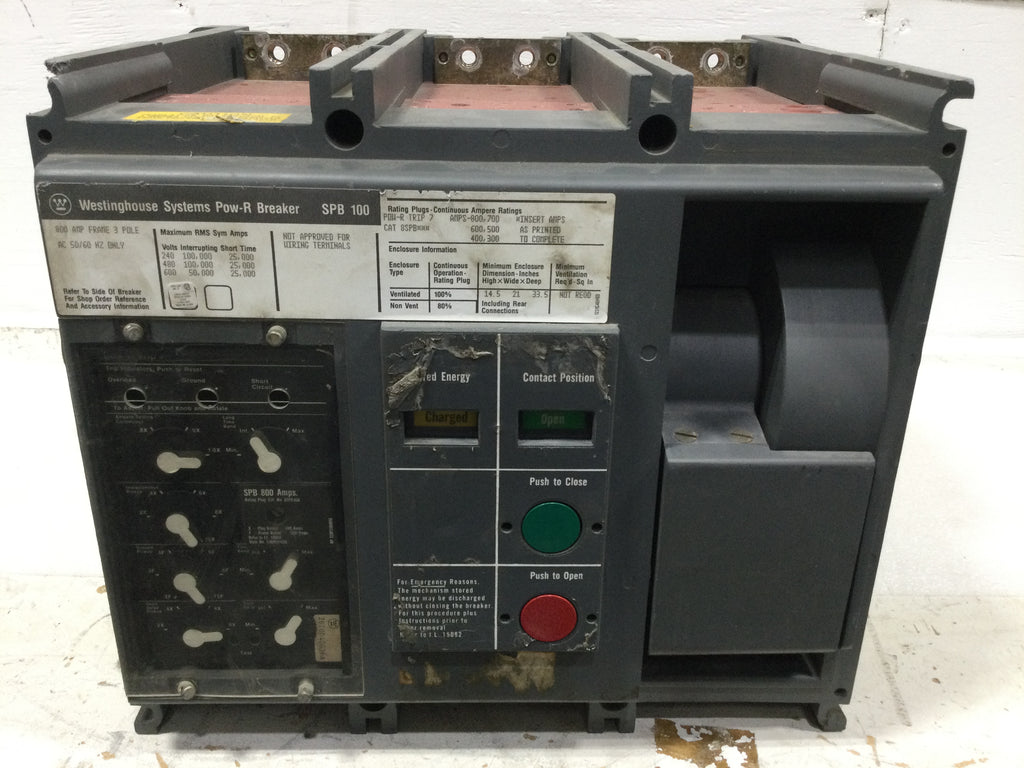Westinghouse SPB100 800 Amp 3 Pole 600V Pow-R Breaker w/Shunt Trip 24VDC 8 Amp